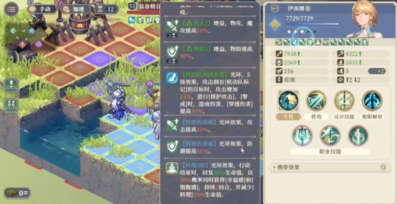 攻击提升:20%(攻2)+15%(协攻)+15%(机动队光环)+20%(窥破弱点)=70%