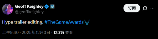 今日,TGA的创始人兼主持人Geoff Keighley在社交媒体上发布了一条动态:“Hype trailer editing(正在进行高燃预告片的剪辑工作)”,这一动态瞬间在玩家群体中引发了热烈的讨论。
