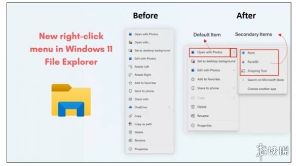 比如,像“使用照片打开”“使用照片编辑”以及“设置为桌面背景”这类选项,在未来的设计中可能仅显示一个“使用照片打开”,而画图、截图工具等相关应用则会统一收纳到侧边弹出面板中。