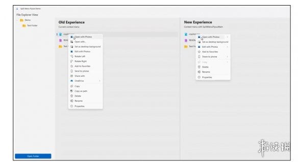 针对上述问题,微软给出的解决方案是引入“拆分式右键菜单”。其核心在于借助一种名为SplitMenuFlyoutItem的新型API,将一个菜单条目拆分成一个主要操作和多个次要选项,其中次要选项会显示在一个独立的小型侧面板中。