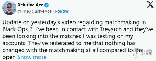 尽管《使命召唤:黑色行动7》开发商Treyarch工作室坚称已回归开放匹配模式,但近期测试报告显示该作匹配系统可能仍在优先考量玩家技术水平而非网络连接质量,引发社区广泛质疑。为此知名主播Xclusive Ace进行了对照测试:在相同游戏模式与时段条件下,其主力账号匹配延迟达42ms,而新手"机器人账号"延迟仅20ms,这种网络差异暗示匹配系统仍在权衡技术参数。