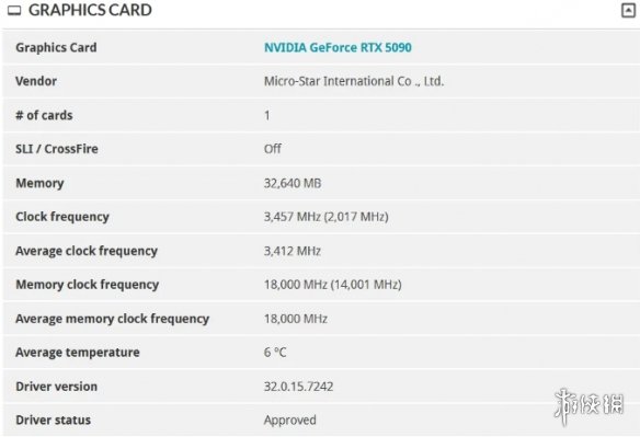 达成如此极端成绩的背后是严苛的散热环境。记录显示,测试时GPU核心频率冲至3,457 MHz,32GB显存被超频至18,000 MHz(等效36 Gbps),而GPU温度被压制在仅6°C——这明确指向了液氮散热等极限超频手段,并非日常使用可达的状态,但足以彰显其性能上限。