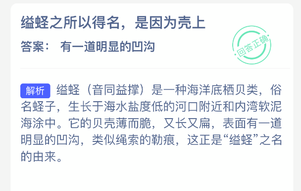 缢蛏之所以得名,是因为壳上?【神奇海洋】12月4日新题目已开答!正确答案现已公布,点击领取拼图,一起为修复海洋生态贡献力量!今日正确答案是:【有一道明显的凹沟】。缢蛏(音同益撑)贝壳薄而脆,又长又扁,表面有一道明显的凹沟,类似绳索的勒痕,这正是“缢蛏”之名的由来。