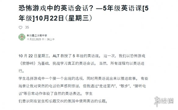 这样具有反差感的两个东西,日本新泻县津南中学却在学校的语言类课堂上把它们联系在了一起。是的,新泻县津南中学在公开课上把《寂静岭》作为教材,展开了英文授课。