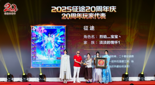 为了回馈众多老玩家的陪伴,本次征途官方特别邀请陪伴了征途20年的玩家代表“烈焰灬宝宝丶”来到现场,巨人网络董事长史玉柱先生惊喜亮相,为玩家现场颁奖。获奖后,“烈焰灬宝宝丶”也在现场分享了自己与征途20年来的故事,引起玩家集体共鸣。