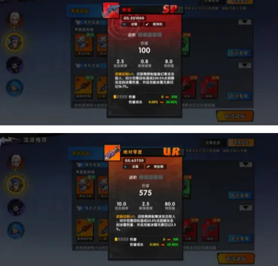 ur:爆裂玉米棒,绝对零度sp:龙息,鲸鲨,流派武器核心ur:绝对零度sp:鲸鲨,冰武器配合火技能可打出蒸发反应。