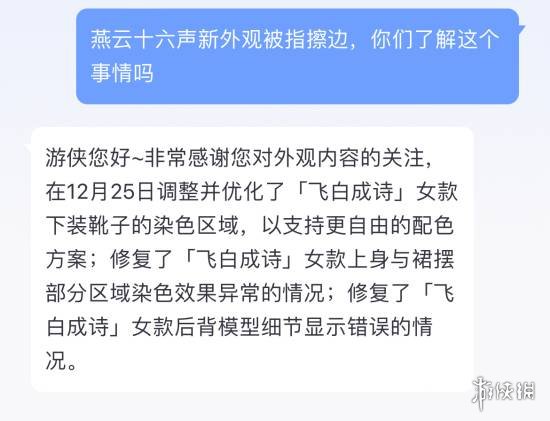 针对玩家的反馈,游戏官方迅速采取了行动。据官方公告及客服回复,开发团队已于12月25日对「飞白成诗」女款时装进行了多项优化修复,具体包括: