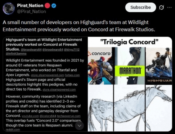 玩家将其与《星鸣特攻》关联比较,不仅因为玩法风格存在相似之处,也因有玩家发现其开发团队Wildlight Entertainment中疑有曾参与《星鸣特攻》项目的成员,这进一步加深了外界对两款游戏关联性的猜测。