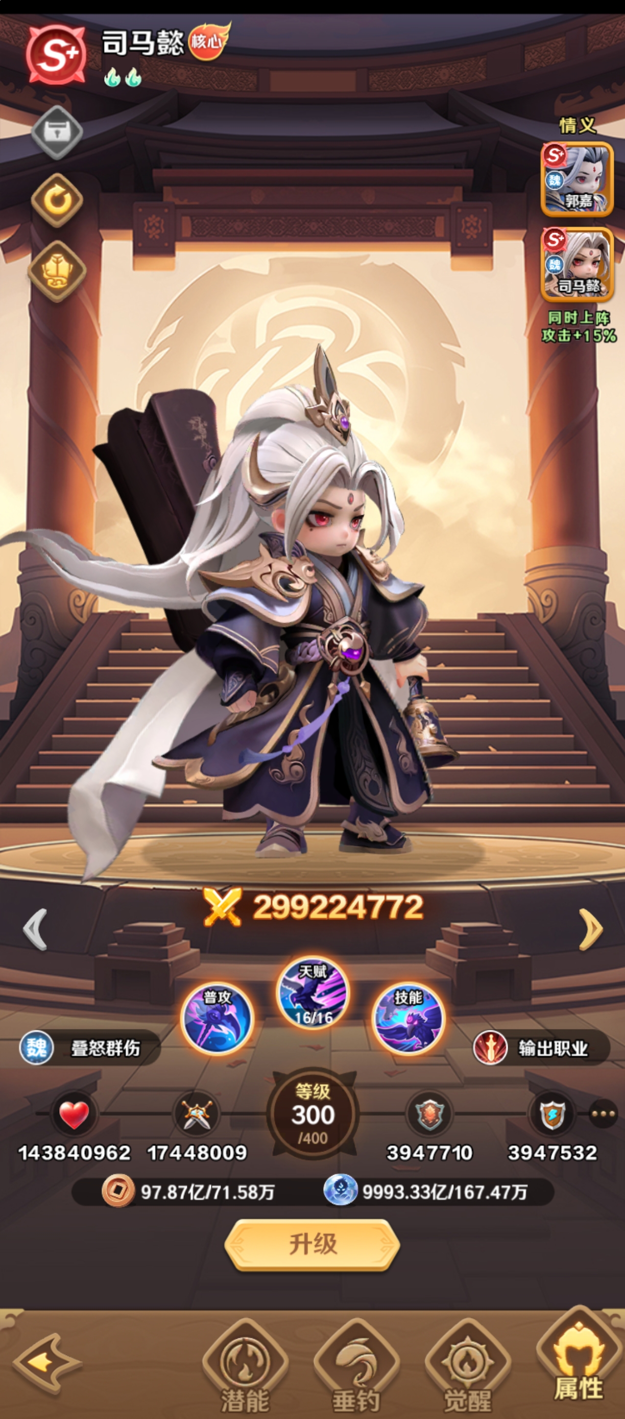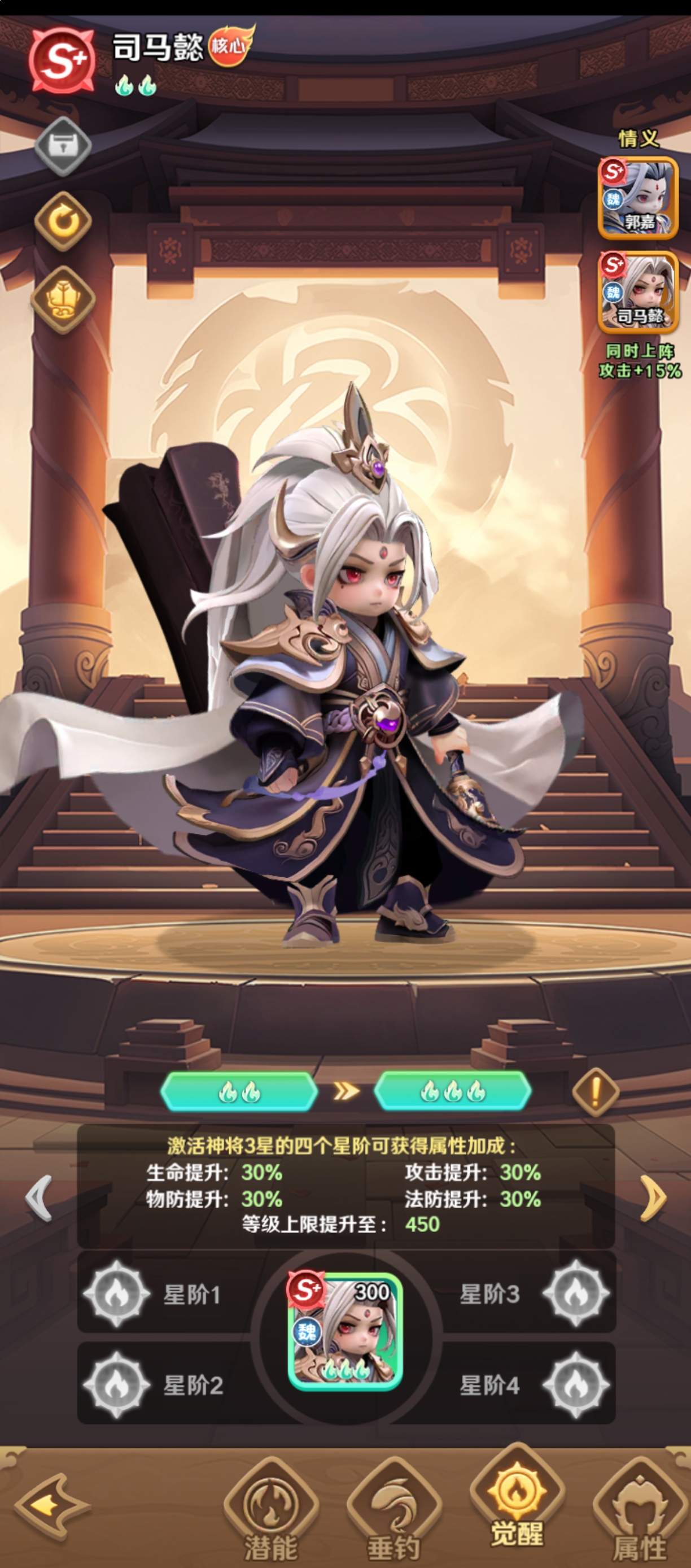 既然司马懿是比较强悍的,而他的星级跟技能的等级能够让他的伤害成长曲线上升,一旦升级为高星之后,质变的效果是特别明显的。玩家在合理运用司马懿的时候,武器装备方面的话,其实应该选择提升攻击力跟怒气值的武器,在防具方面侧重生命值跟法术预防。
