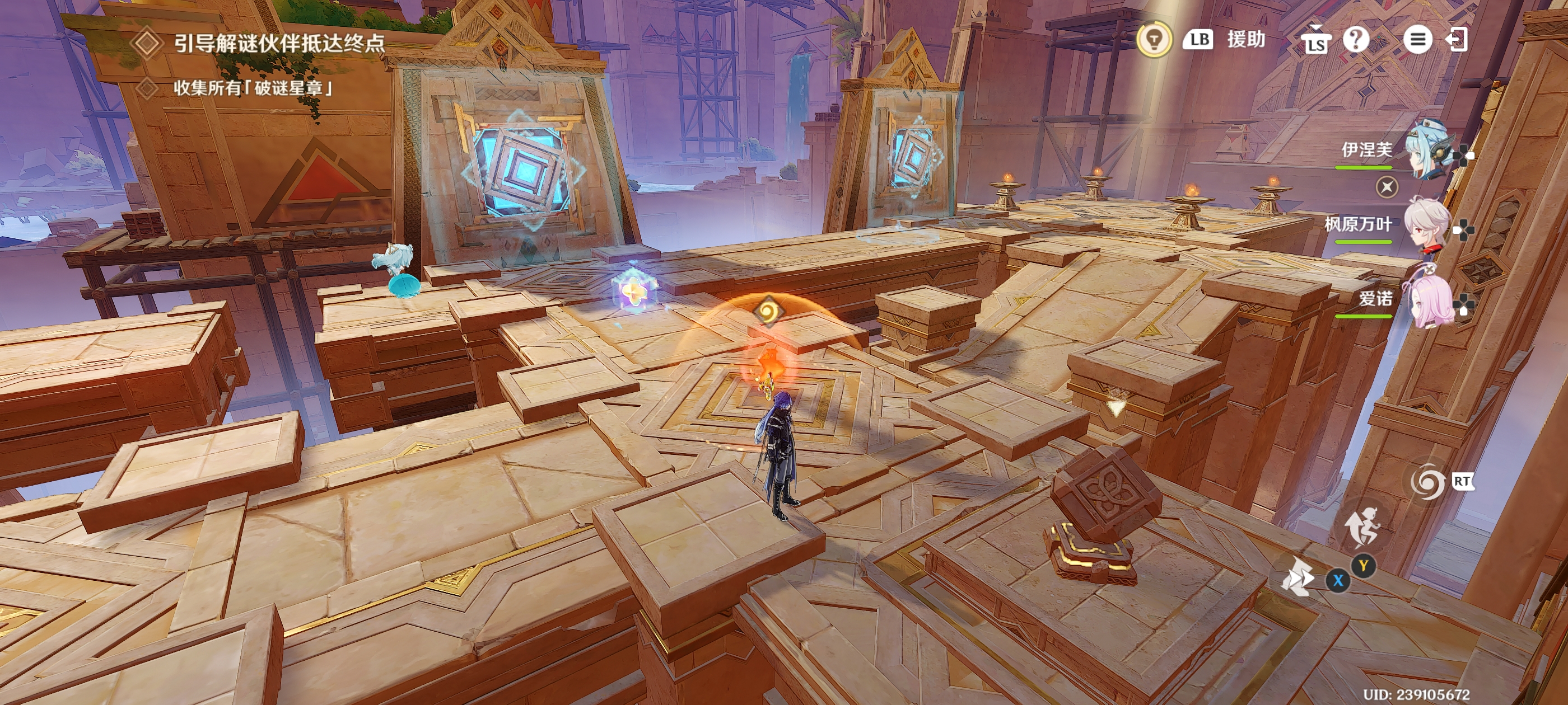 交互完后来到另一个机关旁,将[疾速奇效]拾取并放置在基座上,当解谜伙伴经过后就与一旁的机关交互即可。