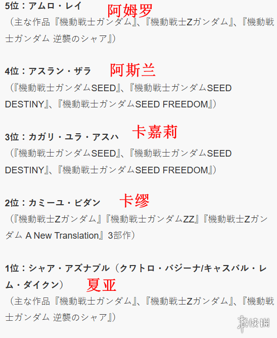 “高达的泥沼”角色人气TOP10:(阿姆罗未能跻身前三,是否受到了声优个人丑闻的波及?)