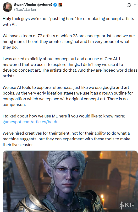 此类举措还与近期发生的一些事件有关,当时有玩家在一些大型游戏中发现了AI生成内容的痕迹,这引发了广泛关注,也让玩家对游戏开发者提出了质疑。Hooded Horse打算彻底避免此类情况的发生。