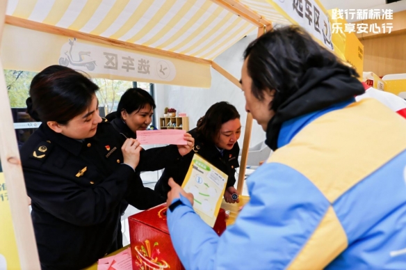 为打破政策条文与公众认知之间的壁垒,本次活动特别打造的“科普市集”成为了最受市民欢迎的区域。市集通过“趣味互动问答”、“车辆免费检修”、“集章打卡“等多种形式,将新国标中的合规要求转化为通俗易懂的实用技巧,让安全知识不再停留在纸面,而是成为触手可及的生活帮手。