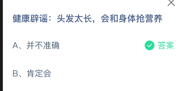以上就是健康辟谣:头发太长,会和身体抢营养,支付宝蚂蚁庄园2025年11月6日答案最新,更多精彩内容,请点击关注39闲玩网更新!