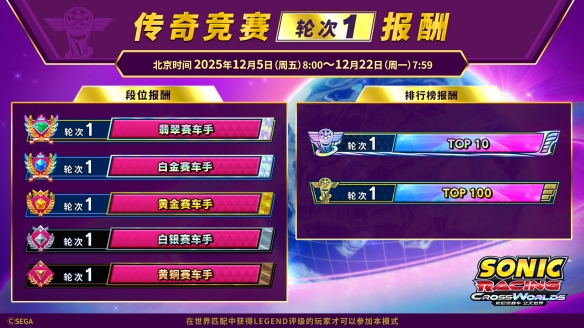 世嘉宣布,热销中的《索尼克赛车 交叉世界》将于2025年12月5日起在游戏内举办面向顶尖玩家的“传奇竞赛”。