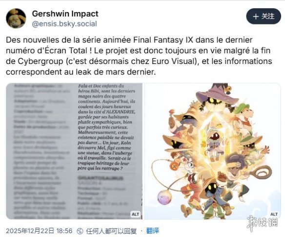 据法国权威影视杂志《Ecran Total》的最新报道,命途多舛的《最终幻想9》动画化项目似乎成功打赢了复活赛,目前预计将于2028年正式公开。这一消息由海外记者Gershwin Impact在社交平台Bluesky上率先披露,对于一度以为该项目已随原制作公司倒闭而彻底凉凉的粉丝来说,这无疑是一块令人惊喜的薛定谔的饼。