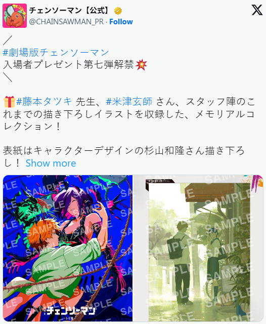 日本官方于今日公布了第七波、也是最终弹的入场特典。自12月20日起,观影观众将可获得收录藤本树、米津玄师及制作团队至今所有全新绘制插画的“纪念收藏集”。此消息一经发布,迅速在日本 X(原推特)上引发热议,标志着此次电影特典活动步入尾声。
