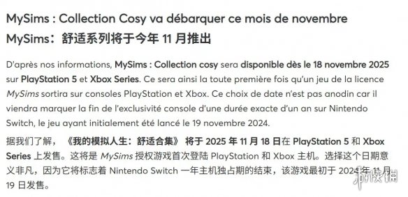 《我的模拟人生》系列的发行商艺电已经确认,该合集将于2025年11月6日登陆Apple Arcade。不过,到目前为止,关于这款游戏登陆PlayStation或者Xbox平台的消息,还没有官方发布相关声明。Billbil-kun 推测,传闻中的发行时间(刚好是Switch版发售一周年纪念日的第二天),或许意味着该作品与任天堂签订的为期一年的主机独占协议即将到期。