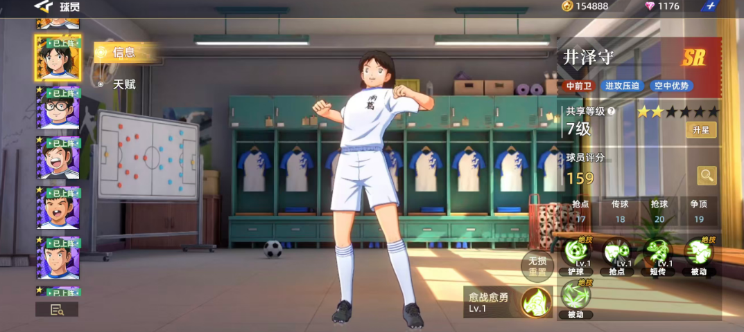 井泽守作为SR球员后期如果强度不够的话,就放在前期过渡期使用完全足够,因为在中前卫球员里面其实井泽守能够造成的进攻压迫反而是不出的,且井泽守最独特的一点是具有一定的空中优势,这一点的话基本是其他球员无法替代的,井泽守在整体的球员评分上面有159的评分,比一般的SR球员还是还要高那么积分的,在其中大家可以利用到的还有抢点17、传球18、抢球20、争顶19这几项数值,因为根据目前的六维图来判断井泽守的属性效果都是比较均衡的,当然其中最突出的是预判这项属性的分值,有22分的基础上面他做中前卫就没有问题了,其他的几个比较游优势的属性就是上面提到的这四个,所以球场上面比赛的话这几项动作都是他会常用到的。