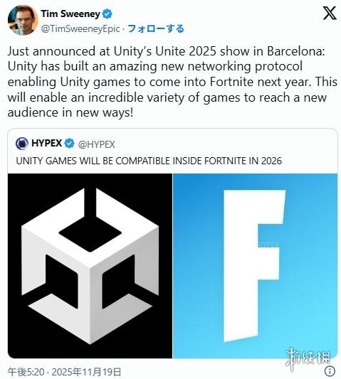 Unity Technologies与Epic Games于11月19日宣布,将合作实现通过游戏引擎Unity开发的游戏在《堡垒之夜》中的展开运行。