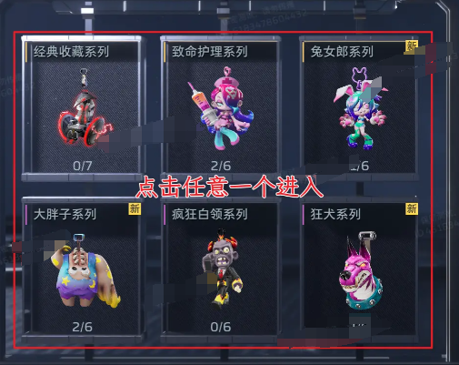 六大系列定位清晰:致命护理主打医疗主题,含彩发、金发等差异化造型;兔女郎系列突出甜美元气风格;两者均包含金色品质挂饰,集齐同系列全部款式可兑换专属装扮道具。狂犬系列以萌系犬类为原型,虽仅一款紫色品质挂饰,但对应任务奖励包含大量赛季经验与补给资源。经典收藏系列则采用特殊获取逻辑——高能激光、红露菇等挂饰无法通过常规补给箱获取,必须通过完成隐藏挑战或达成特定对局成就解锁。