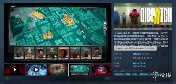 由AdHoc Studio打造并发行的超级英雄职场喜剧游戏《超英派遣中心》,现已正式登陆Steam平台售卖。该游戏目前在Steam平台收获了“特别好评”,好评率高达87%。