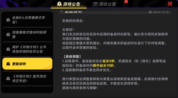 当然,玩家们也积极提出了一些宝贵建议。部分玩家反馈在四人快速模式中,由于节奏过快,新手玩家可能在前期对游戏机制理解不足,导致游戏体验稍受影响,希望能在后续版本中增加一些新手引导环节;还有玩家建议在八人排位模式中,进一步优化匹配机制,让实力相近的玩家能更精准地匹配对战,提升竞技公平性。而《月相计划》官方也是十分听劝的立马发布公告做出了调整。