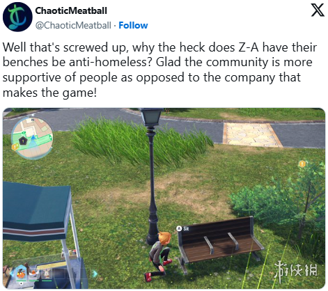 有网友愤怒表示:“连游戏里都要驱赶无家可归者?这太荒谬了!”也有人感叹:“防流浪者长椅、社区变成宝可梦狩猎区,这世界果然没什么不同。”