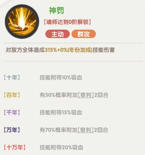 作为一名坦克,千道流的主动技能神罚,除了对敌方全体造成技能伤害外,还有额外附加吸血,有机率对目标附加审判这些效果。技能附带吸血,就意味着战斗过程中可以自身恢复血量,减少了对辅助治疗的依赖,也增加了前排扛伤的能力。附加的审判只要携带者出手,就能够使其受到特殊伤害,这个效果弥补了千道流这样防御系输出不足的缺点,相当于锦上添花。