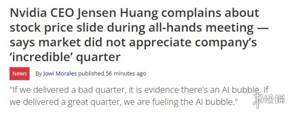 面对市场的矛盾反应,黄仁勋略显无奈地说:"如果我们交出糟糕的季度,那就是AI泡沫的证据;如果我们交出极好的季度,我们又被说成在助长AI泡沫。"他补充道,"如果我们有一个糟糕的季度,哪怕偏差一点点、看起来有点不太稳,全世界都会崩塌。"