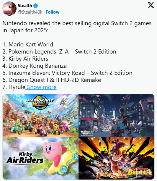 任天堂近日公布了基于日本eShop数字销量的2025年度双平台畅销榜。《银河战士Prime4》未能进入任一榜单——尽管其发售时间有限,但榜上有数款作品本应被这款任天堂第一方新作超越,无论销售周期长短。最值得关注的是位列Switch 2年度销量第三的《卡比的驭天飞行者》,其仅比《Prime 4》多两周销售时间便取得显著优势。