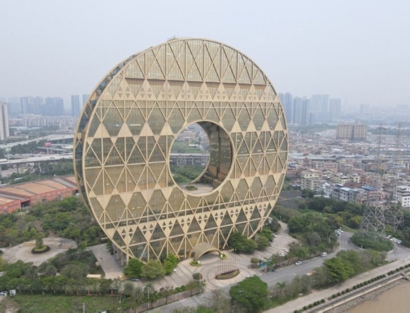 广州圆大厦,俗称“铜钱大厦”或“土豪圆”,高138米,共33层,建筑面积约10.5万平方米,外圆直径146.6米。大厦由意大利米兰理工大学教授Joseph DiPasquale设计,灵感来源于广东塑料交易所的开市铜锣以及南越王墓出土的古玉璧,象征“天圆地方”与商业繁荣。大厦于2013年建成,总投资约10亿元,并曾花费10万元进行公开征名。