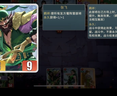 今天就用蜀国阵容举例说明,比较直观的,那就是 卡牌 颜色的变化,主要是以黑色还有绿色为主。核心的玩法是围绕羁绊,搭配后勤效果之后,马上就会形成一个完整的体系。所谓的羁绊就是要把足够数量的蜀国将牌凑齐,就可以激发特殊技能,获得额外的属性加成。让整个队伍的战斗力也能有效迅速的实现飞跃。在选择卡牌时构建蜀国阵容是关键,开局时尽可能挑选蜀国将牌,不要去追求高星级的卡牌。先将凑齐基础羁绊作为核心,一开始可以使用2~3个蜀国低星级的将领。