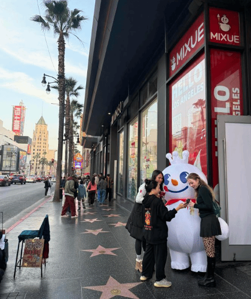 近日,多位网友在社交平台分享,在美国好莱坞地区看到了蜜雪冰城门店,并前往实地打卡。