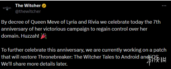 根据PlayGround最新报道,为庆祝《 巫师之昆特牌:王权的陨落 》发售七周年纪念,CD Projekt RED工作室正推进该作重返移动平台的相关工作。