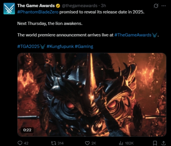 TGA(The Game Awards)官方推特正式官宣,国产3A武侠动作游戏《影之刃零》确认参展2025 TGA。