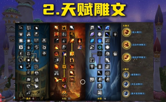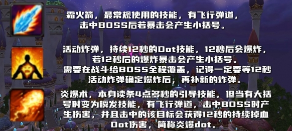 霜火箭、活动炸弹、炎爆术、法术连击天赋