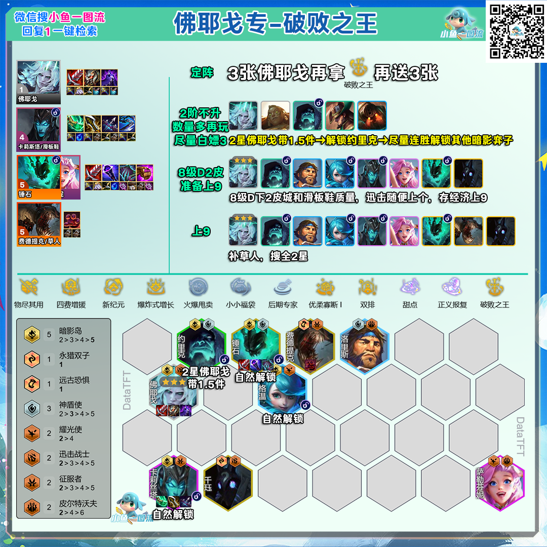 云顶之弈 S16版本 英雄联盟 传奇主题,在新赛季会增加很多新的羁绊和棋子,还有不少老羁绊,老英雄的回归,那么有不少小伙伴好奇新赛季有什么强力阵容,下面就给大家带来s16破败之王佛耶戈阵容推荐。