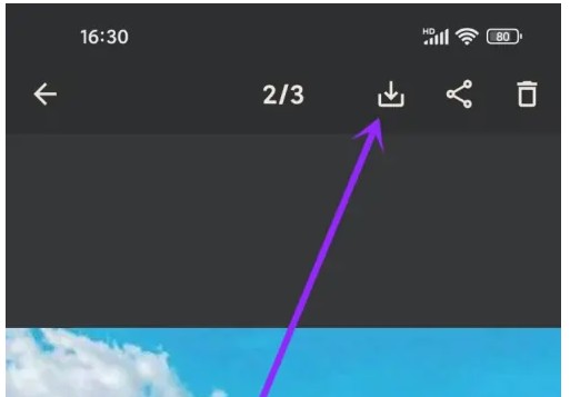 进入图片预览页,点击【保存】图标即可。
