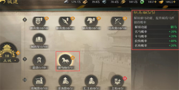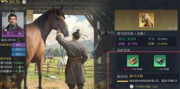 1、前期可将驯马场升级至3-4级后再进行驯马,避免获得低品质马匹。