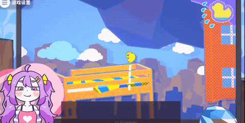 虽说游戏的操控仅有"旋转""跳跃"的简单操作,但局内的反人类反常规的设计却让每一步都充满挑战。利用关卡里的平台和弹绳向上登高,小黄鸭的屁股指向跳跃方向,在跳跃的同时鸭子会喷出水向前迸发,看起来向前或向后的移动/旋转,实际是完全相悖的物理重力的动作反馈。