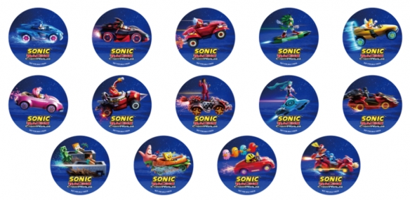 试玩游戏或参与 4 人对战赛,即可得索尼克赛车马口铁徽章(共 14 款,随机 1 款)。